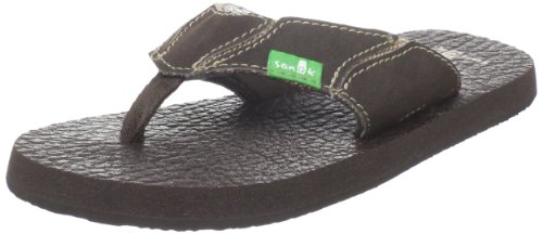 After the big one, this sandal will keep 'em safe. Your little ones will love the Sanuk Aftershock, a great and comfy Sanuk flip-flop. Set in a faux nubuck upper with canvas detail, contrast stitching and an embroidered logo, this kid's sandal is cow-friendly and sharp looking, too! The super soft neoprene liner and cushy sole of this Sanuk sandal will ensure that little feet are spending the warm weather days in comfort, and the Happy U outsole will keep them steady. Let them kick back in the Sanuk Aftershock.You will not be disappointed with