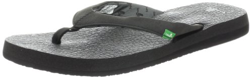 The Yoga Serenity flip flops from Sanuk has a footbed made from real Yoga mat and a nubuck strap and printed jersey liner. All synthetic materials, no animal products used. Sanuk, which means "Fun and Happiness" in Thai, was started by a southern California surfer with a whacked out taste in footwear. Whether you're a surfer chasing the perfect wave or a rock climber seeking the perfect line, Sanuk's goal is to offer you sandals that are as much about funk as they are about function. Unlike stiff shoes, Sanuk's patented sandal construction allows your feet to bend and flex the way nature intended. Walking with this natural motion strengthens your feet, enhancing both your balance and your performance.You will not be disappointed with